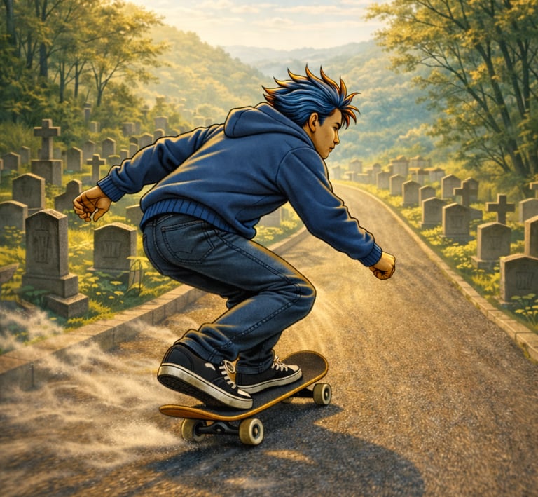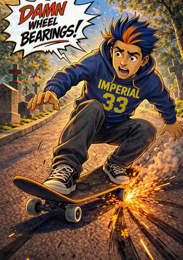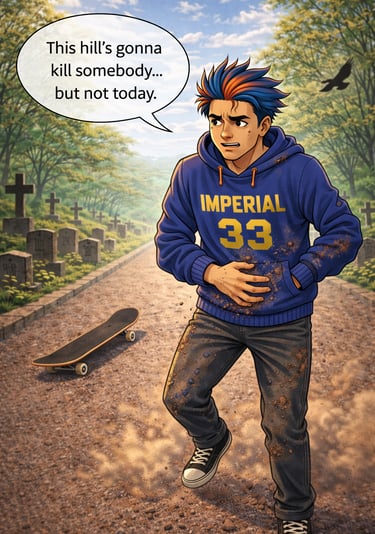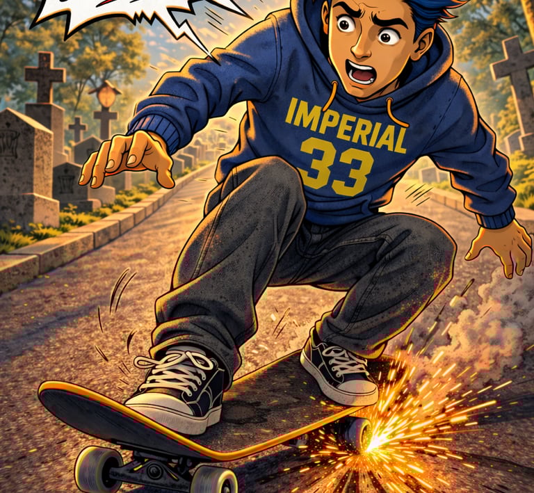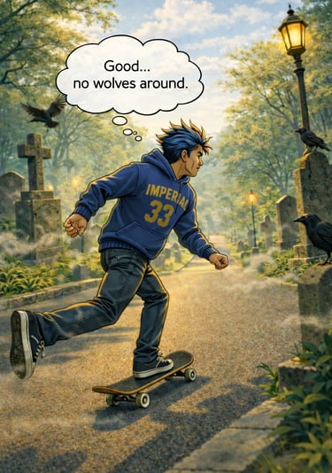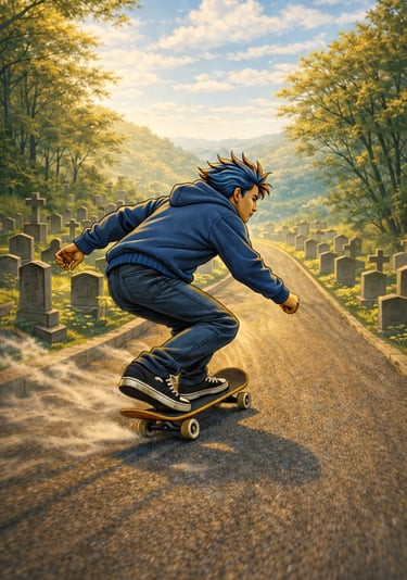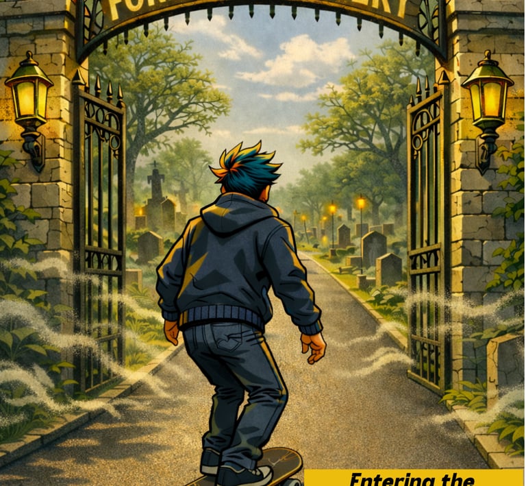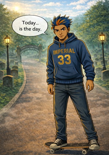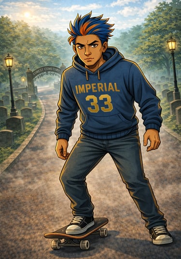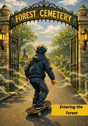 Dive into an urban mystical world where skateboards, BMX, scooters, and rollerblades blend with discipline and story, all wrapped in dark streetwear vibes.